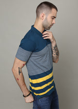 Get boatloads of compliments from everyone around wearing this airforce polo T-shirt from Krimso. The structured design of this short-sleeved T-shirt is accentuated with a colourblocked pattern set in horizontal stripes, making it truly stylish. Besides stylish, this T-shirt is also rich in comfort, thanks to the blend of 48% polyester and 52% cotton fabrics. You can best team this T-shirt with blue denims and sneakers.