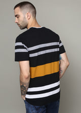 Set yourself apart from the crowd and attract the ladies in like moths to light, with your charm by wearing this striped T-shirt from KRIMSO. Made from soft frabric, this T-shirt has half sleeves and comes in regular fit. This striped T-shirt can be teamed up with a pair of jeans and loafers to complete your stylish look.